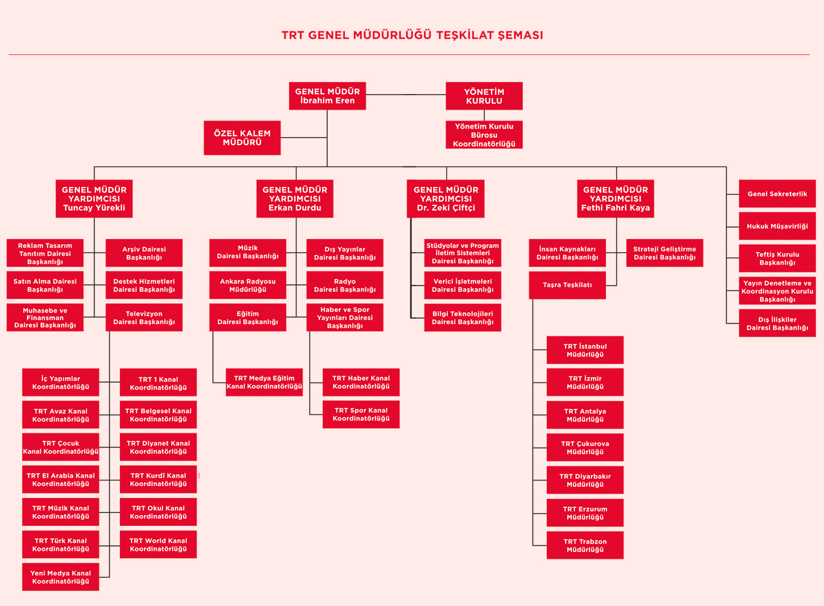 Teftiş KuruluTeftiş Kurulu Başkanlığı; Kurumumuzun teftiş, denetim ve danışma birimidir. TRT Genel Müdürlüğü birimlerinin iş ve işlemlerinin, yasal düzenlemelere, stratejik amaçlara, etik ilkelere uygun bir şekilde yürütülmesini, bu çerçevede kaynakların verimli kullanılmasını sağlamak amacıyla çalışmalarını sürdürür. Kurul; teftiş, inceleme ve soruşturmaları zamanında, eksiksiz yaparak, Kurulun çalışmalarından elde edilen bulguları da kullanarak Kurum birimlerinin mevzuata, üst politika belgelerine ve belirlenen amaçlara uygun çalışması için teklifler hazırlar. Denetimler sonucunda tespit edilen kontrol zafiyetlerinin sebep ve etkileri araştırılarak, sorunların giderilmesine yönelik alınacak aksiyonlara ilişkin olarak mevzuat analizi ve ilgili birimle yapılan görüşmeler ışığında oluşturulan görüş ve öneriler yönetime sunulur.